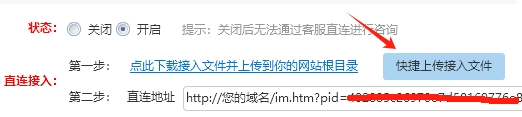 要使客服直連能正常運行,需要上傳接入文件至您的網站根目錄,可以使用通用FTP軟件上傳,也可以使用莫鄰提供的快捷上傳接入文件功能